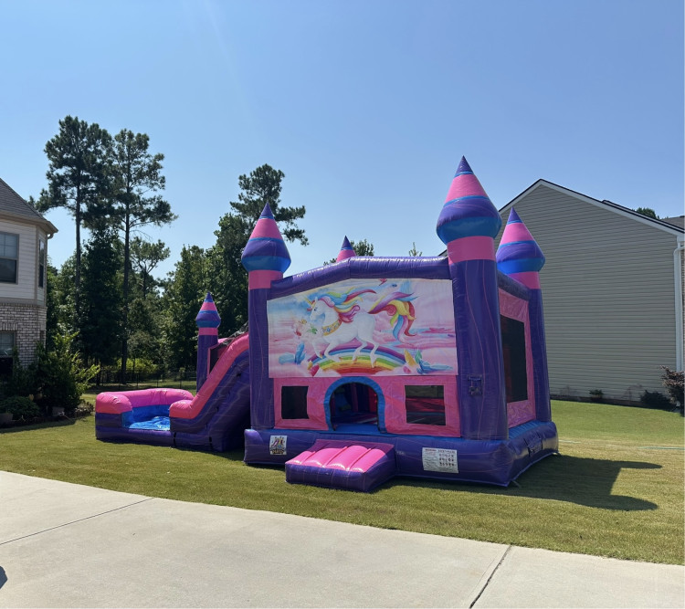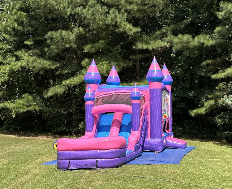 Get ready for non-stop fun with the Pink Bounce House Combo — the perfect mix of bouncing, sliding, and splashing! This bright and beautiful inflatable is a dream come true with its vibrant pink and purple design that’s sure to wow every guest. Kids can bounce, jump, and play inside the spacious bounce area, then climb up and zip down the exciting slide! On hot days, just add water to turn the slide into a cool splash zone, or keep it dry for year-round fun. Whether wet or dry, it’s the ultimate party starter for birthdays, playdates, or any celebration!
