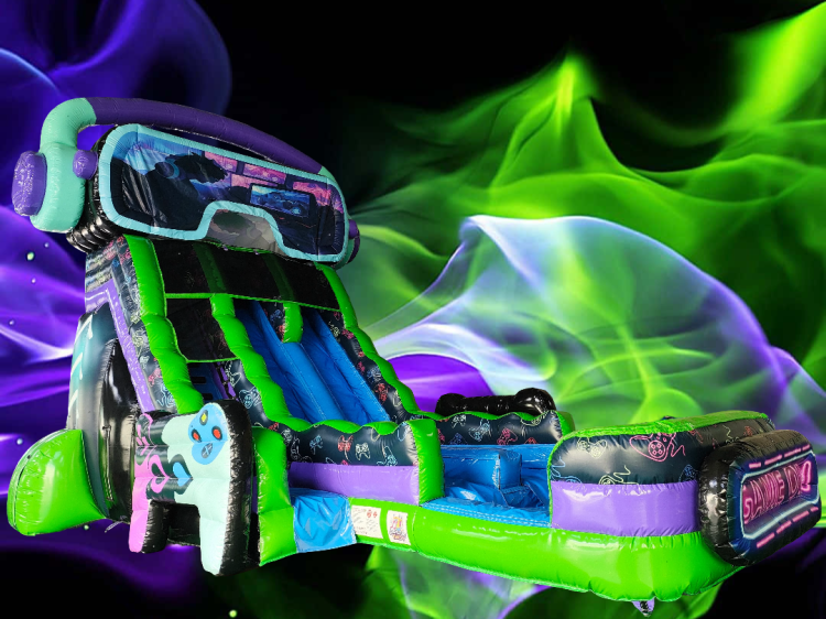 This Game On Dual Lane Water Slide is the Coolest and Hottest thing out right now! Perfect for gamer parties or any gathering; this slide promises hours of excitement, fun and laughter. Experience the thrill as you glide down this epic slide & get ready to be wowed during your summer adventures with this Game On Slide!